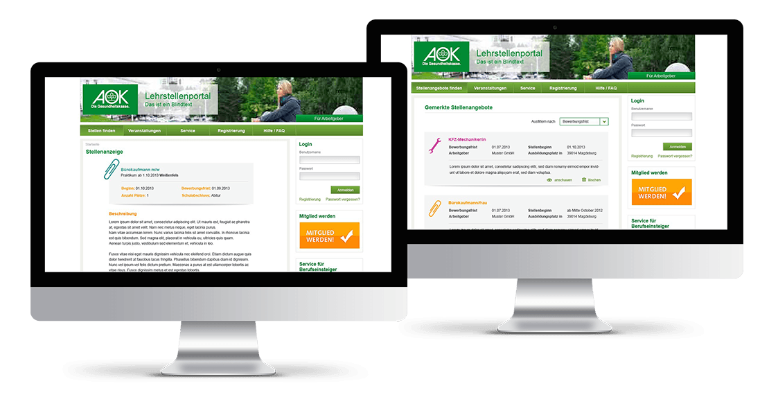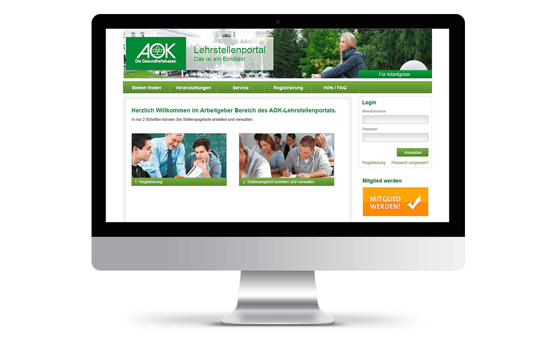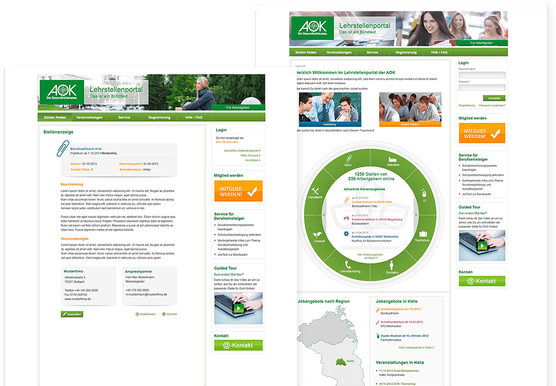 Die AOK ist mit 24 Millionen Versicherten die größte Krankenversicherung Deutschlands. Mit den neuen „AOK-Wegbereitern“ weiten die AOK-Verbände ihren Service für Berufseinsteiger und Ausbildungsbetriebe aus. Schommer Media entwickelte das Stellenportal mit verbesserter Funktionalität und hoher Benutzerfreundlichkeit auf Basis von TYPO3. Die einheitlichen Jobportale stellen zielgruppengerechte Informationen bereit und ersetzen die Jobbörsen der Landes-AOKs.