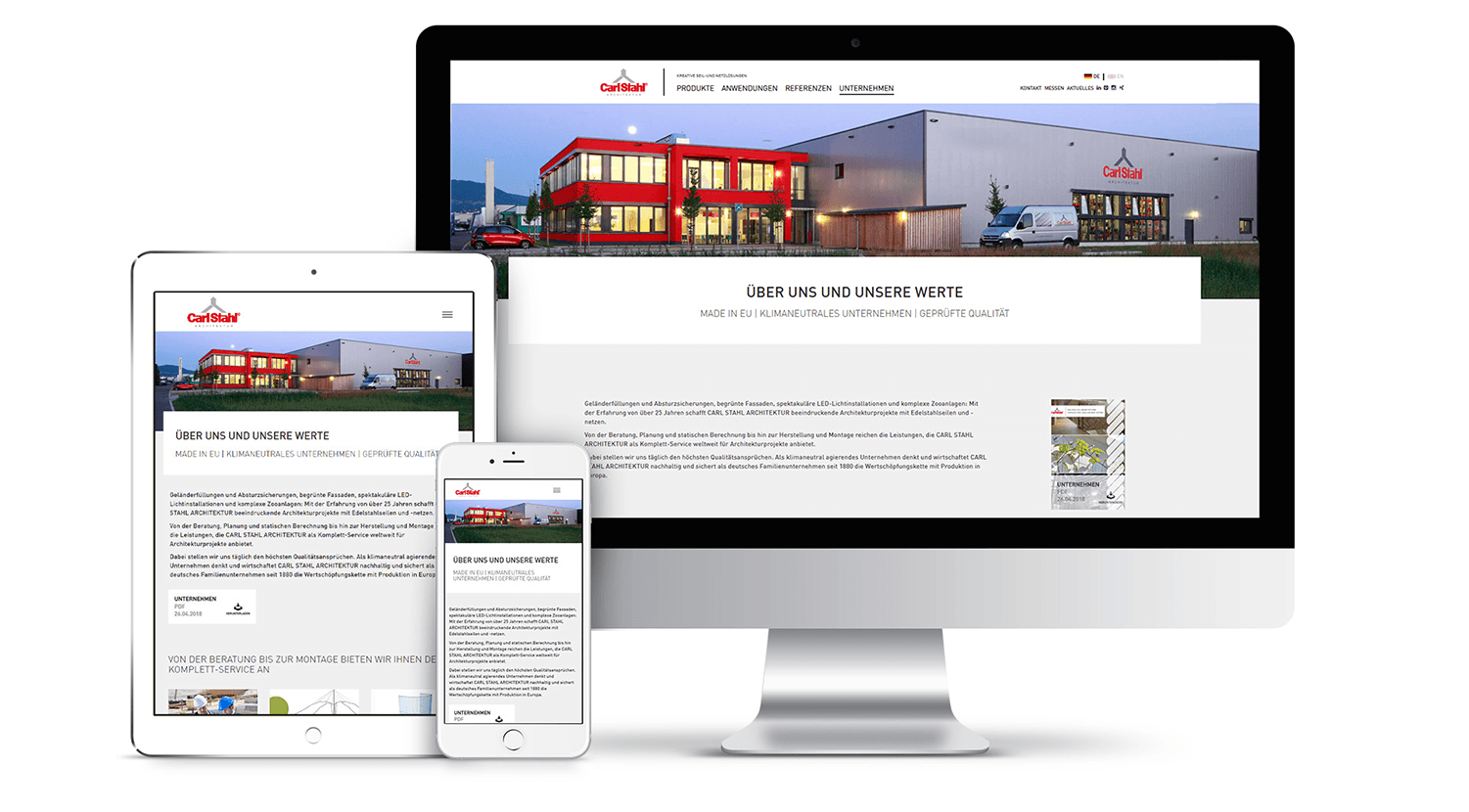 Die neue Webseite der Carl Stahl Architektur überzeugt durch großzügiges Design, dominiert von beeindruckenden Bildwelten der Produkte aus Architektur und Innenarchitektur.