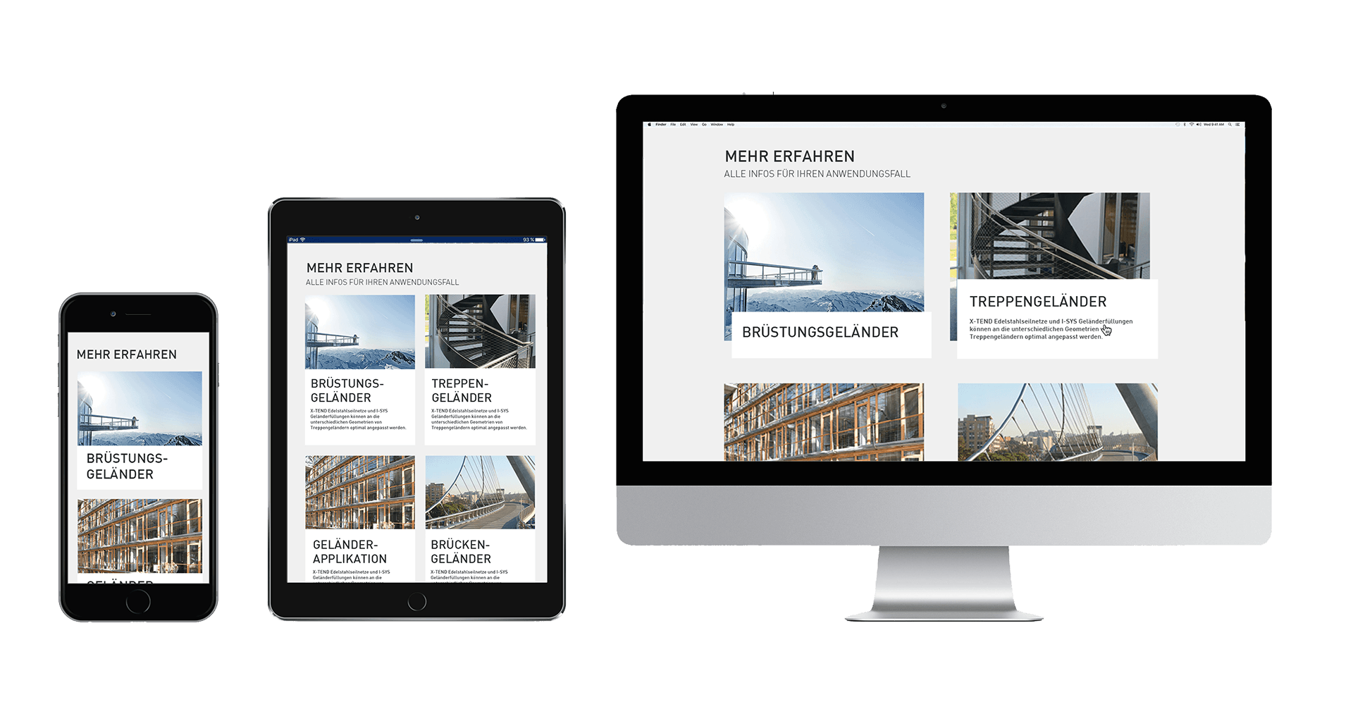 Die Seite basiert auf dem Content Management System TYPO3, welches von unserer Internetagentur implementiert wurde. Für die bestmögliche Darstellung der Produkte, Bereiche und Casestudies hat Schommer Media eine Lösung programmiert, über die Carl Stahl Architektur beliebige Beziehungen zwischen den Bereichen herstellen kann. Die Produktdaten werden in einer Datenbank gepflegt und dann passend zu den jeweiligen Querbezügen auf der Webseite ausgespielt.
