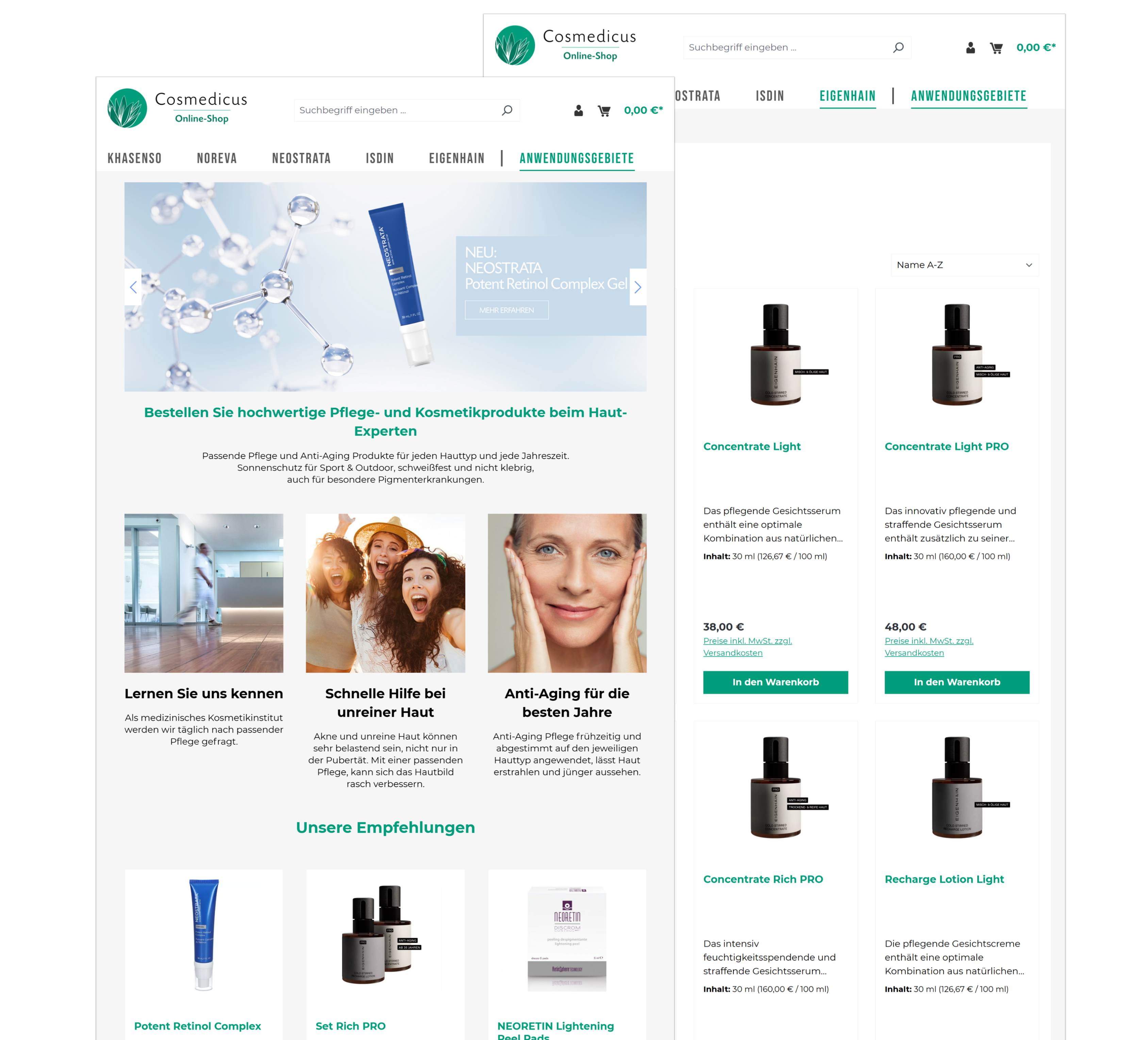 Die Cosmedicus Hautcentrum GmbH betreibt einen spezialisierten Online-Shop für hochwertige dermatologische Produkte und Kosmetik. Der bestehende Shop war technisch und funktional nicht mehr zeitgemäß und konnte den gestiegenen Anforderungen an Usability, Mobiloptimierung, Marketing-Funktionen und Prozessunterstützung nicht mehr gerecht werden.