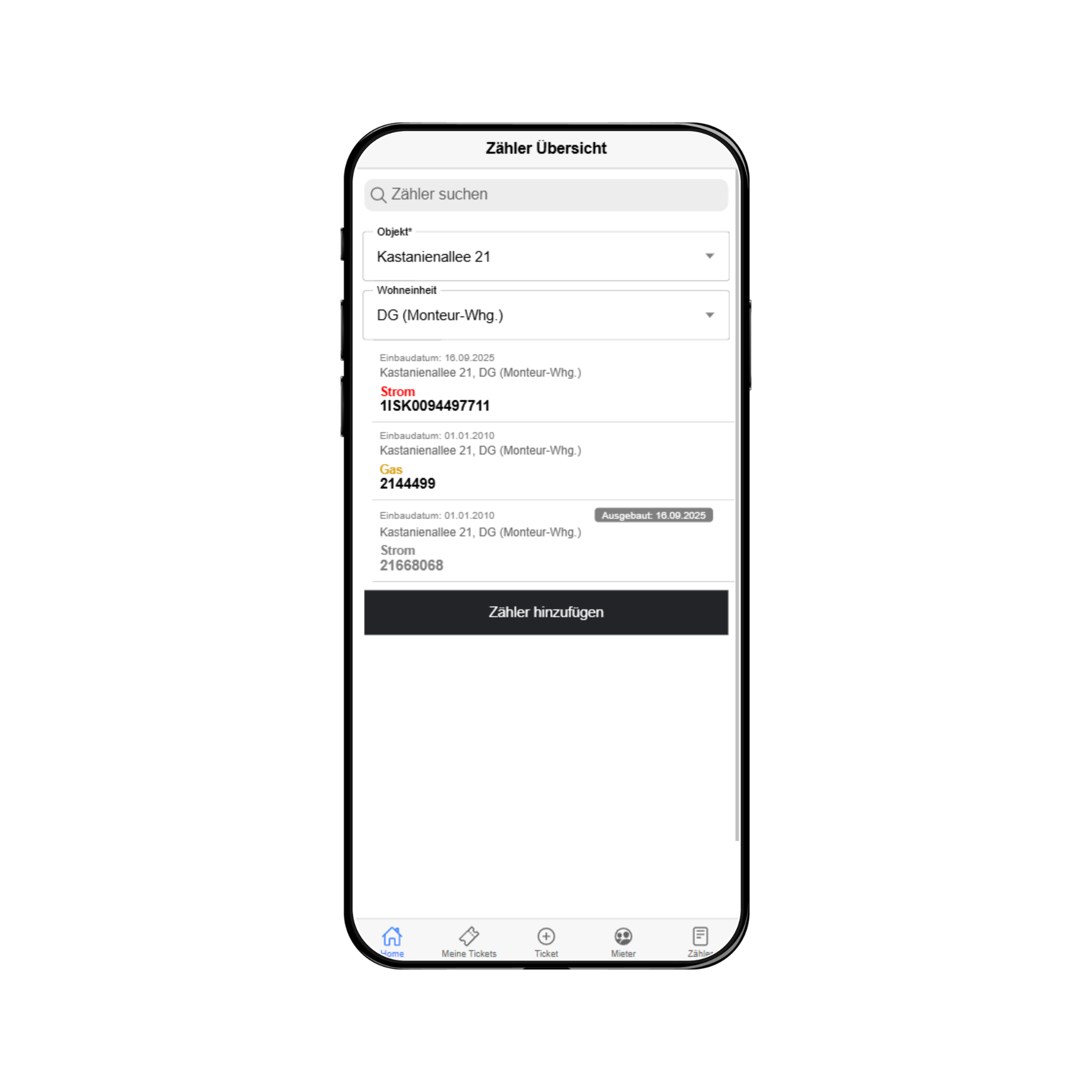 Auch die Mieterverwaltung wurde integriert: Neben den Stammdaten lassen sich Ein- und Auszugsdaten sowie zimmerweise Vermietungen in WG-Wohnungen erfassen. Dadurch sind alle relevanten Informationen stets zentral verfügbar. Für jede Immobilie können außerdem Zähler für Strom, Wasser und Gas gepflegt und deren Ablesungen über definierte Workflows dokumentiert werden.