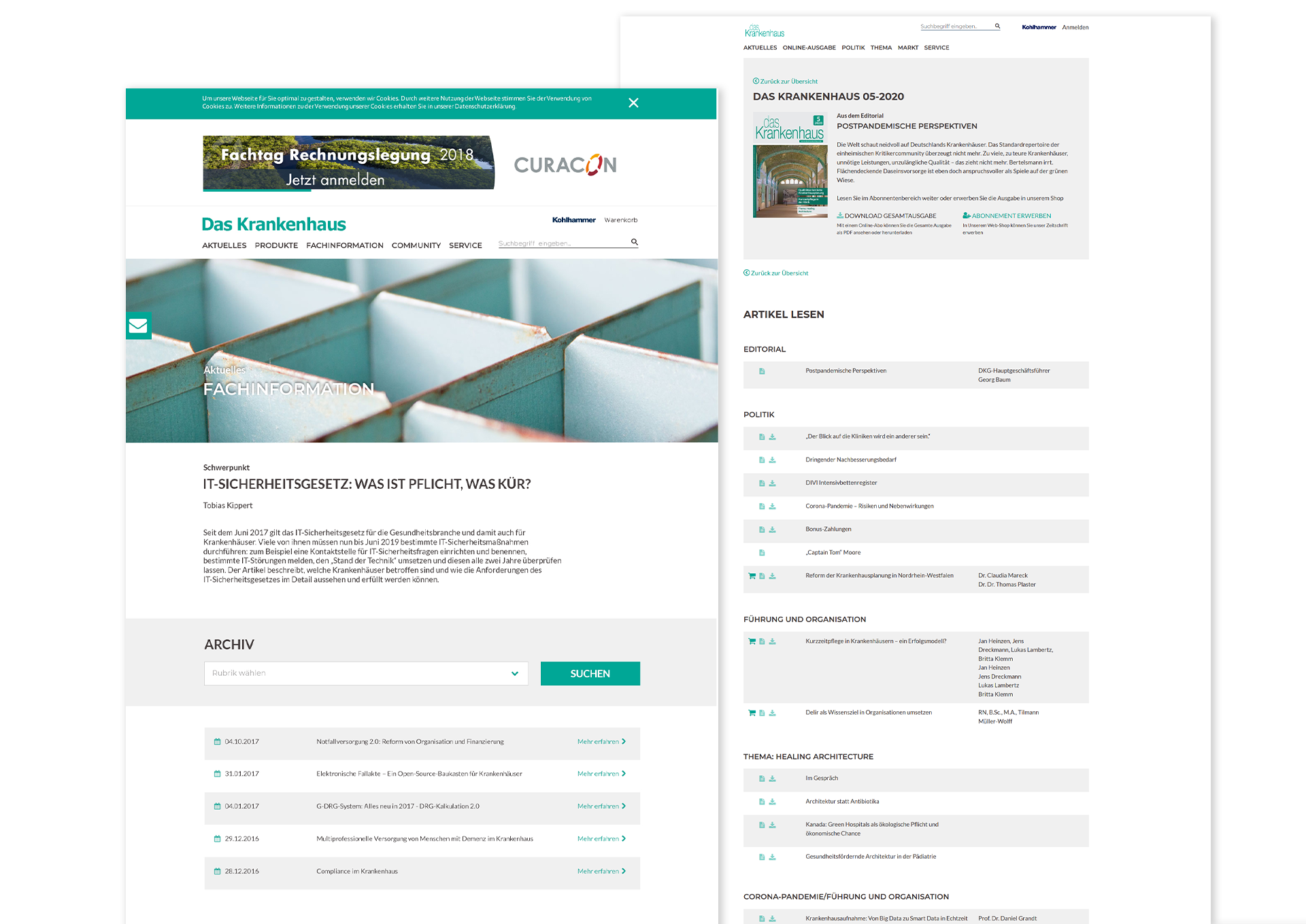 Nach dem erfolgreichen Roll-out für Das Krankenhaus wurde die Lösung sukzessive für weitere Magazine des Kohlhammer Verlags angepasst und ausgerollt.